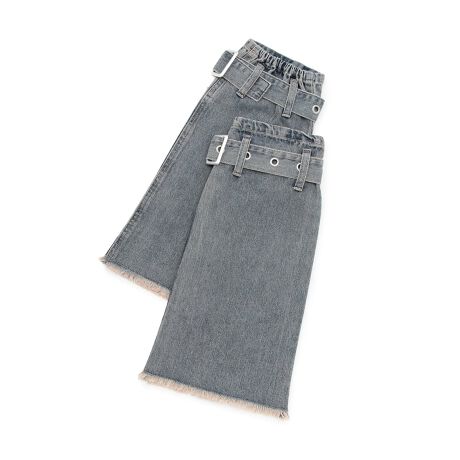 ワンランク上のコーディネートを演出できるデニムのレッグカバーです。フリンジやベルト装飾でクールな雰囲気に仕上げました。はき口はゴム仕様になっており、脚に程よくフィットするのもポイント。かわいい印象のミニスカートを合わせると、甘辛ミックスのスタイリングが完成します。