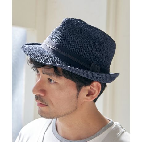 見た目にも涼しげなサーモ糸で編んだ夏場に大活躍の中折れハット。