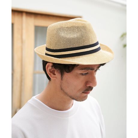 見た目にも涼しげなサーモ糸で編んだ夏場に大活躍の中折れハット。