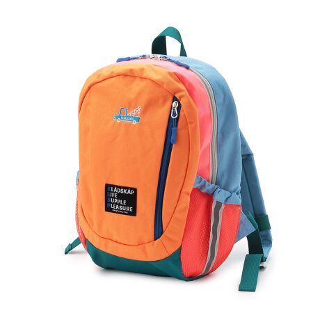 働く車の刺しゅうをワンポイントで添えたカラフルな配色のリュックです。