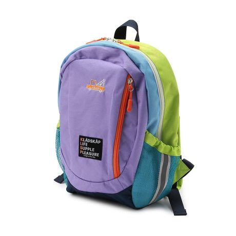 働く車の刺しゅうをワンポイントで添えたカラフルな配色のリュックです。