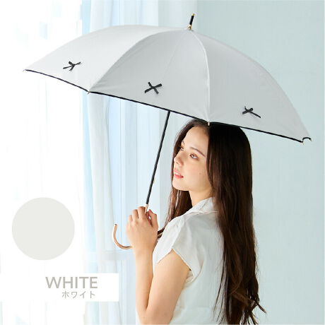 パイピング無地傘にワンポイントのリボンがかわいい♪