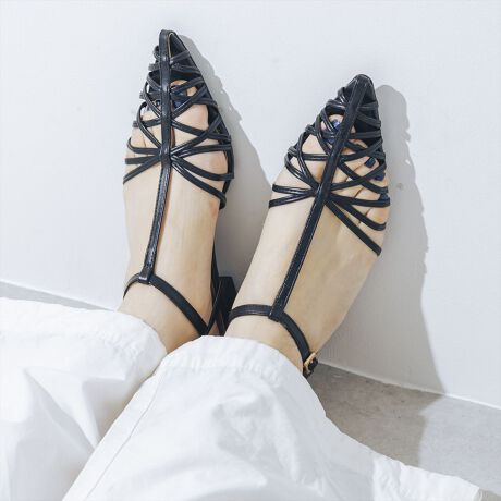 【26春夏新作】 【S-LL・柔らかい】ポインテッドメニーストラップサンダル JA5902