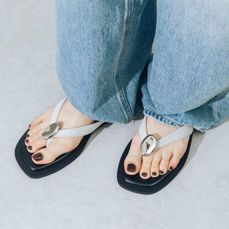 マルイウェブチャネル   /   シューズ   /   ビーチサンダル   /   【26春夏新作】 【S-LL・柔らかい】メタルモチーフスクエアフラットトングサンダル JA5947