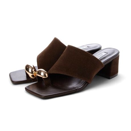 毎年大人気のトングサンダルがアップデートして新登場!ぷっくりと立体感のあるメタルパーツをプラスし、トレンド感たっぷりのデザインに仕上げました。はっきりとしたスクエアトゥと斜めにカットされたアッパーがシンプル過ぎず程よいアクセントに◎トング部分にも柔らかい素材を使用しているので、痛くなりにくく快適な履き心地です。高過ぎない太ヒールは、安定感があり美脚効果があるのも嬉しいポイントです。メタルパーツのアイテムは、この夏1足は持っておきたいマストアイテム!