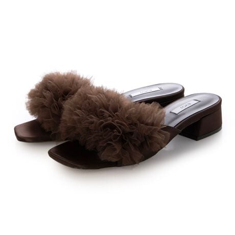たっぷり寄せたチュールフリルが夏のコーディネートにアクセントをプラス!トレンドのスクエアトゥを採用し、デニムなどのカジュアルなスタイリングにも合わせやすいよう仕上げました。約3cmの太ヒールは安定感があり、歩行時のグラつきを軽減してくれるのも嬉しいポイント◎大人な雰囲気のベーシックカラーも、旬のニュアンスカラーも、どちらもシーズンムードを盛り上げてくれること間違いなしです!