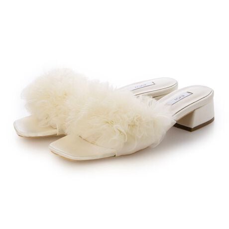 たっぷり寄せたチュールフリルが夏のコーディネートにアクセントをプラス!トレンドのスクエアトゥを採用し、デニムなどのカジュアルなスタイリングにも合わせやすいよう仕上げました。約3cmの太ヒールは安定感があり、歩行時のグラつきを軽減してくれるのも嬉しいポイント◎大人な雰囲気のベーシックカラーも、旬のニュアンスカラーも、どちらもシーズンムードを盛り上げてくれること間違いなしです!