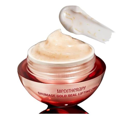 ゴールド※1とコラーゲン※2を配合した、糸を引くほどもっちり濃密なクリームが、つややかでハリ感のある肌に導きます。