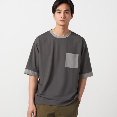 襟とポケットは同じ配色を合わせた新しいレイヤードTシャツです。