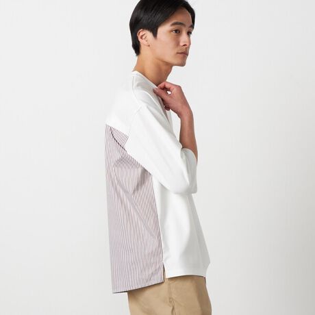 後身頃にストレッチロンドンストライプを使用したデザインTシャツです。