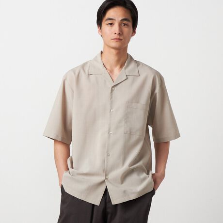 ゆとりを持たせたリラックスシルエットのオープンカラーの半袖シャツです。