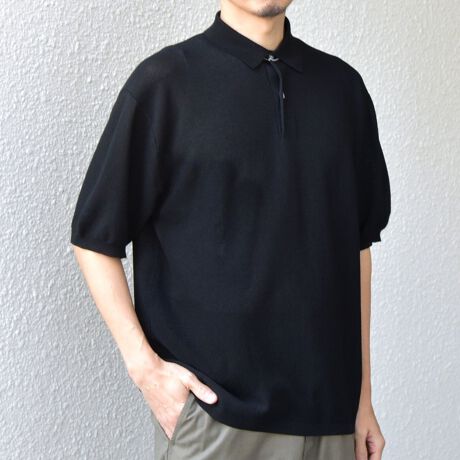 カットソーのポロシャツでは出せない、上品なニットならではの柔らかな表情がポイントです。