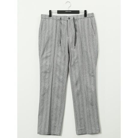 キチンと見えするルックスと楽ちんな穿き心地を兼ね備えた、ノータックのテーパードパンツです。ベルトループとドローコード付きの2WAY仕様、ウエストストレッチ、フロントファスナー&ボタン、センタープリーツ加工、前後ポケット、蜂のアイコン付き。同素材のセットアップジャケットにスニーカーを合わせるとスポーティーな着こなしが完成します。プライベートからオフィスカジュアルまでオンオフ兼用で大活躍してくれます。