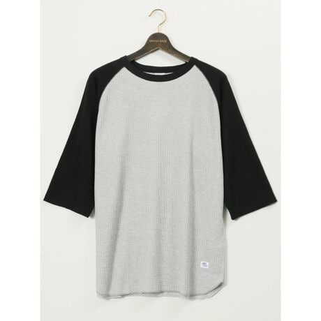 ワッフル 配色ラグラン クルー7分袖Tシャツ