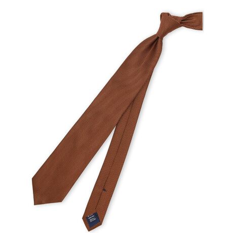 日本製ネクタイメーカー「フェアファクス/FAIRFAX」社との協業企画。表地の風合いと締めた時のノットのスタイルまで考えられた芯地。スローな動きで織ることで凹凸感のある表情に織り上げた生地。細心の注意をはらった大剣のカンヌキやループ糸等、熟練の職人によるハンドメイド仕上げ。生地から裁断、縫製までの全工程を日本国内で行うメイドインジャパン。高い技術力を武器にして製品の完成度を上げています。