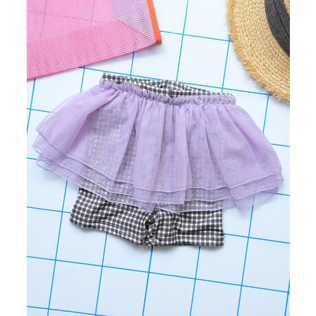花柄やギンガムチェック柄に、それぞれ異なるカラーのチュールを重ねた配色も魅力。