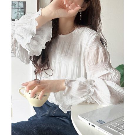 透け感あるシフォン素材に軽やかなプリーツを施した、上品なシアーブラウス♪