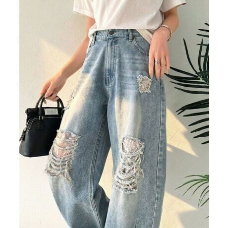 レースと曲線美で魅せる大人仕様の上品ダメージデニム。