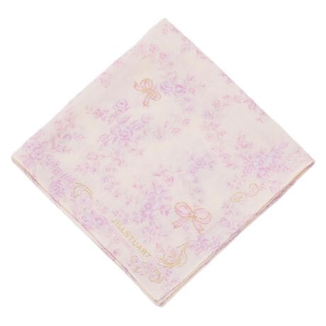 小花柄とリボンのデザインが可愛らしい、ミニサイズのプリントハンカチです。使い易いガーゼ素材も魅力のひとつです。