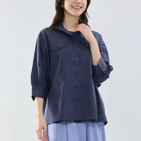 オーバーサイズシルエットで仕上げた長袖シャツ。肩の切り替えをなくしたゆったりとしたデザインで、リラックス感のある着こなしが楽しめます。程よくハリのある生地は自然なシワも風合いとして映え、軽く羽織るだけで抜け感のあるスタイルに。ウエストに入れてふんわりとたるみをつくり、フレアスカートに合わせたコーディネートもおすすめです。同素材アイテム(30-61-05-708)と合わせれば、統一感のある着こなしを楽しめます。