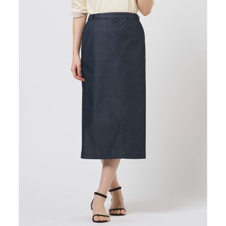 ■デザイン程よくボディラインから離れる、Iラインシルエットのナロースカート。ストレートラインをベースに、裾に向かってわずかにゆとりを持たせることで、女性らしいニュアンスをプラスしました。後ろ中心にはスリットが入っており、足さばきがスムーズで抜け感のある仕上がりに。ウエストの前部分には、タブと釦のディテールを施し、トップスをインした際のアクセントにしています。前ポケットはステッチのみのデザインですっきりとさせ、後ろウエストはゴム仕様にすることで、長時間の着用でもストレスフリーな穿き心地を叶えました。オンオフ問わず活躍し、コーディネート全体を品よくまとめてくれる頼れるアイテムです。