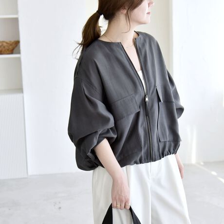 シャツ感覚でさらっと軽く羽織れる、ショート丈のシアージップブルゾン。