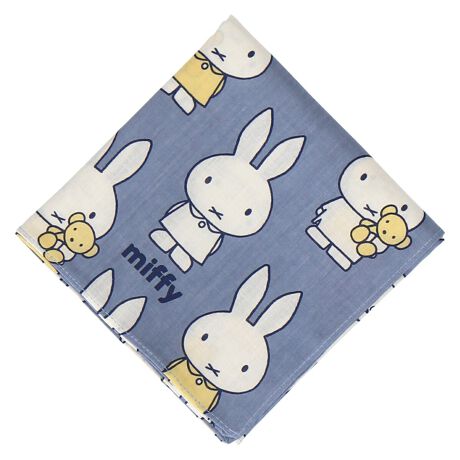 ミッフィーの総柄がかわいいプリントハンカチ。お弁当箱を包んだり、ひざ掛けにしたりと使い方色々で、便利に使える一枚です。