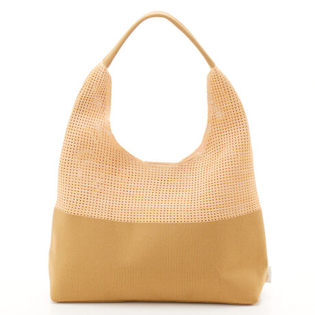 縦にA4ファイルが入り肩掛けもできるラウンドトートです。マグネットホック付きなので使用感も◎上半分はメッシュのニットの編み地になっていて軽やかな夏にぴったりで、