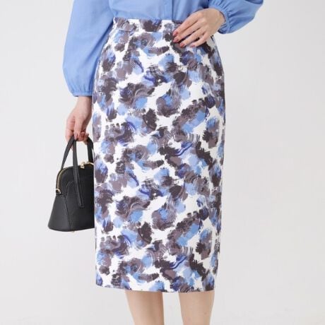 アート風フラワープリントが目を惹く、シンプルなナロータイトスカート。