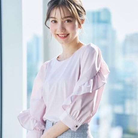 ・フリルがスリーブ部分に沿うように配して華やかさをプラスし、女性らしさを引き立てます。