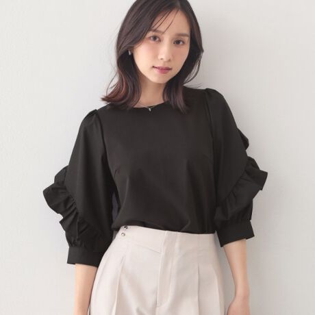 フリルスリーブが華やかなドッキングポンチトップス