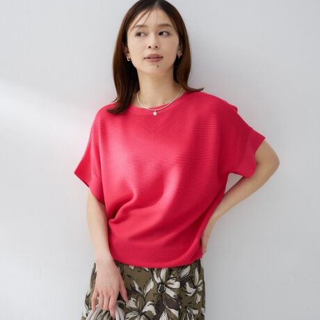 薄手で透けにくい肉感で、さらっとした清涼感のあるストレッチ素材を使用したフレンチスリーブプルオーバー。