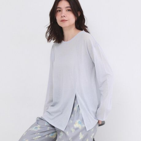 ・シンプルなゆとりあるシルエットに、フロントサイドのハイスリットがアクセントとなったシアーカットソーです。
