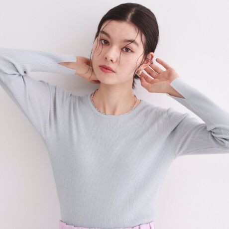 ・ラメ入りの素材感を活かした、シンプルなリブニットトップス。