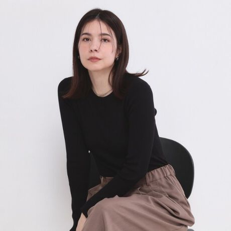 ・すっきりとしたクルーネックで、一枚ではもちろんジャケットのインナーとして着用したり、キャミワンピースなどとのレイヤードにもオススメです。