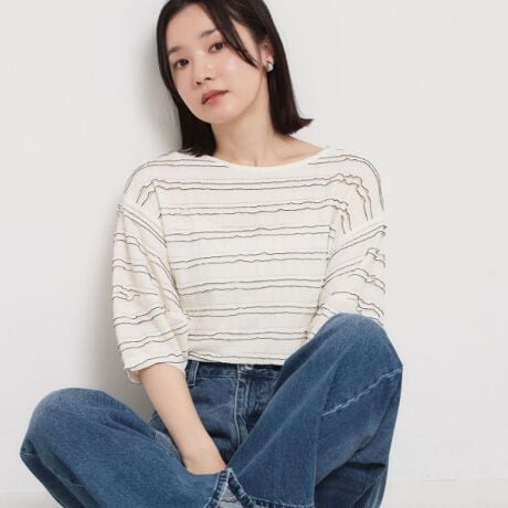 フリルレースを段々に重ねたボーダー見えのトップス。