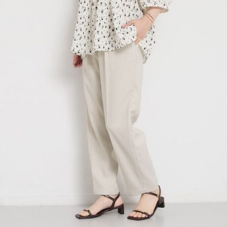 すっきりと穿けるテーパードシルエットのきれいめパンツ。
