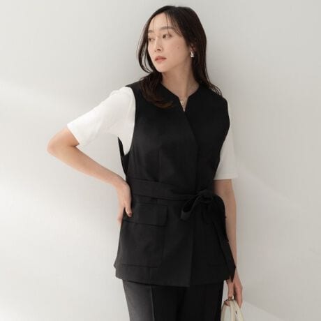 キーネックデザインが特徴的なジレ。