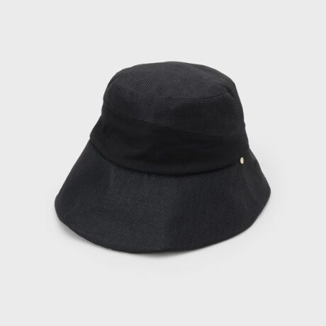 麻調素材に異素材の巻きをデザインした涼やかなデザインのハット。