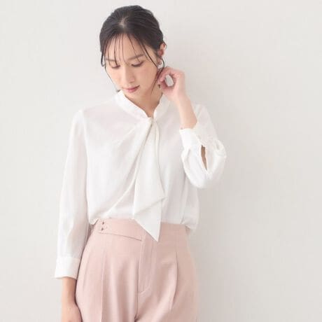 アシメドレープボウタイブラウス【洗濯機OK・イージーアイロン】