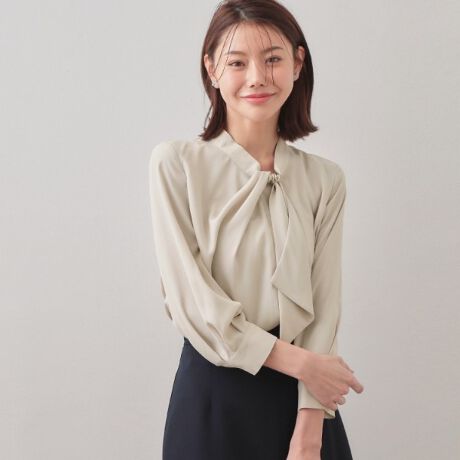 アシメドレープボウタイブラウス【洗濯機OK・イージーアイロン】