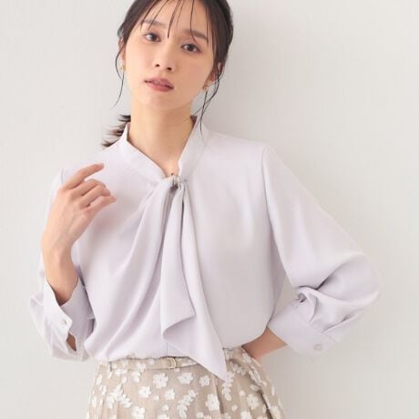 アシメドレープボウタイブラウス【洗濯機OK・イージーアイロン】