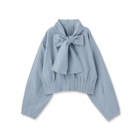 ボウタイが目を引くシャツブルゾン。