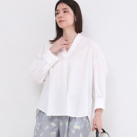 ・スキッパーデザインで顔まわりはすっきり、ラフさの中にほどよい女性らしさをプラスしてくれる一枚。