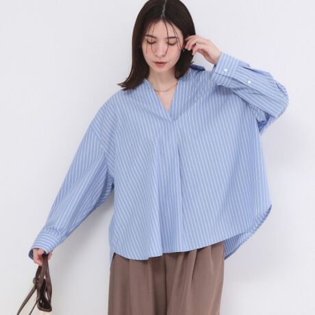 ・スキッパーデザインで顔まわりはすっきり、ラフさの中にほどよい女性らしさをプラスしてくれる一枚。