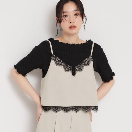 麻調レース切り替えキャミ