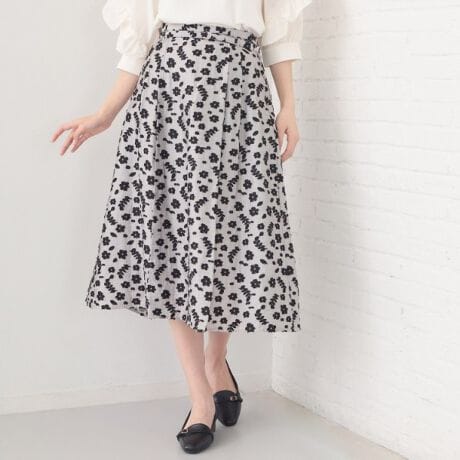 麻調シアーな素材に花柄ジャカードが映えるフレアスカート