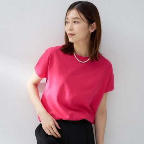 一枚で着映えするフォルムもポイントで、長めのフレンチスリーブが気になる二の腕をさりげなくカバーしてくれ、程よいゆとりのあるシルエットも自然に体型を綺麗に見せてくれます。