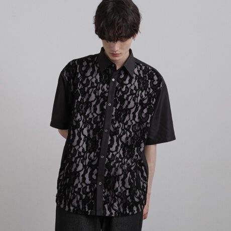 フロントに大胆にレース素材を使用した、軽やかな雰囲気の半袖シャツ。