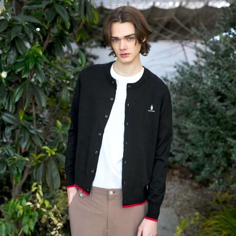 オリジナルワッペンが映えるラウンドカラーニットカーデ